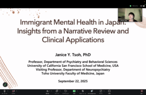 In her lecture, titled “Immigrant Mental Health in Japan: Insights from a Narrative Review and Clinical Applications,” Professor Tsoh provided a comprehensive overview of the history and current status of immigration in Japan, as well as previous studies on foreign residents. She also offered practical guidance for mental health professionals on approaches that can be applied in clinical practice starting immediately.